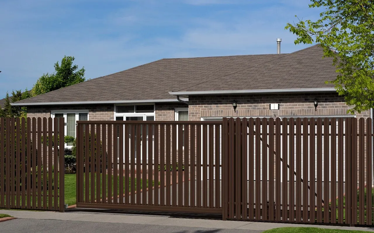 Откатные уличные ворота стандартных размеров в алюминиевой раме с заполнением сэндвич-панелями slg-s
